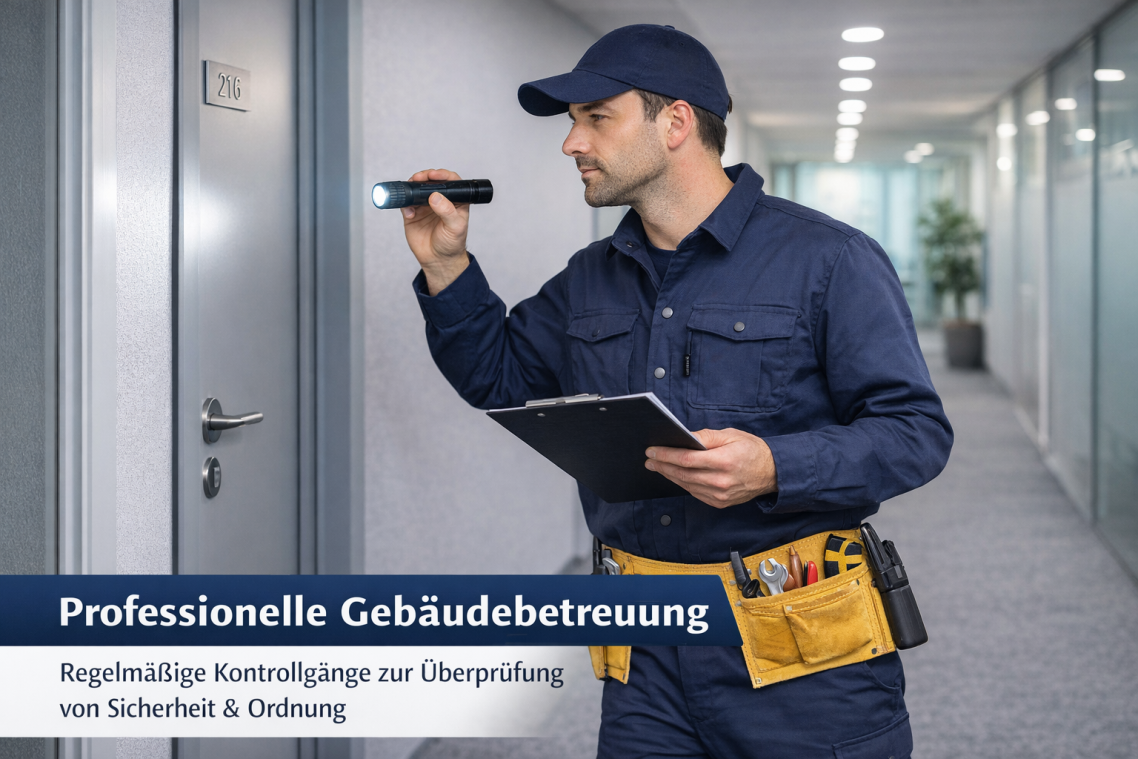 Durch regelmäßige Kontrollgänge, technische Überprüfungen und kleinere Instandhaltungsmaßnahmen erkennen wir mögliche Störungen frühzeitig und sorgen für eine schnelle und zuverlässige Lösung. Unser qualifiziertes Personal arbeitet diskret, verantwortungsbewusst und nach höchsten Qualitätsstandards.